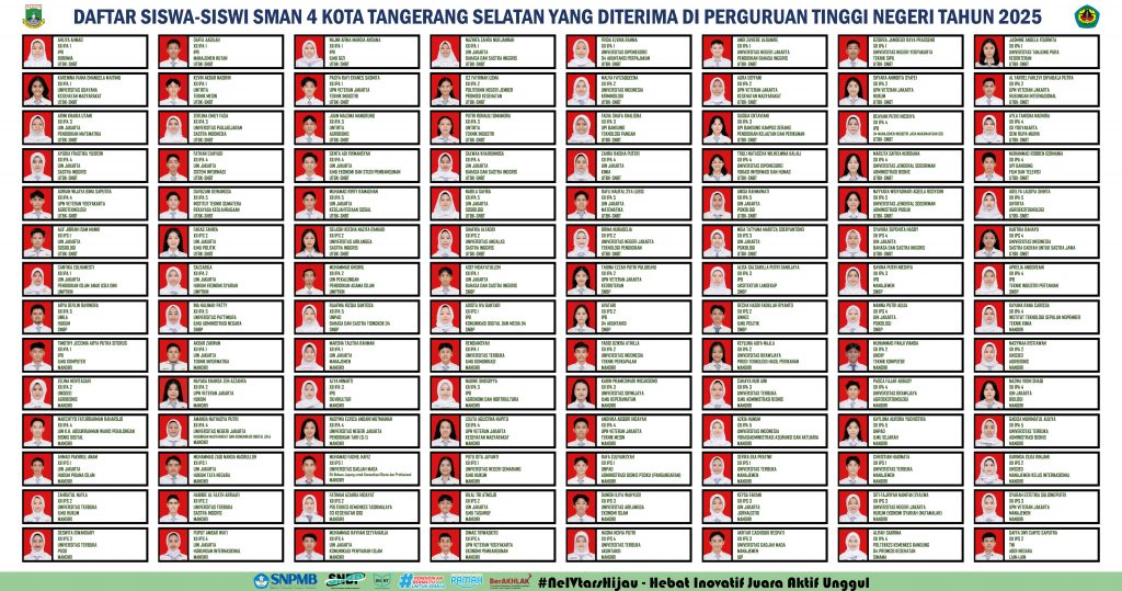Berikut ini adalah para siswa yang diterima di Perguruan Tinggi Negeri
